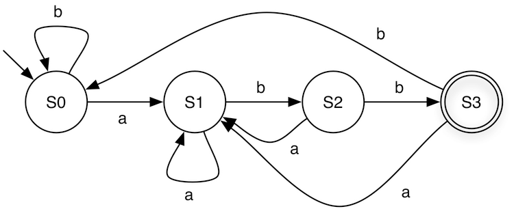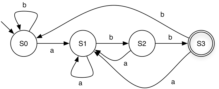 Consider the DFA over Σ = {a, b} that accepts all strings ending in ’b’. A straightforward construction gives four states: