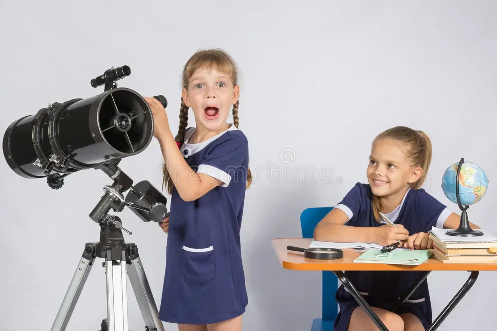 can be interpreted in two ways: either the speaker is using the telescope, or the girl is carrying the telescope.