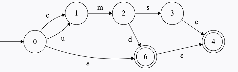 (Requires NFA diagram from the original exam PDF.) Convert the given NFA to a DFA and write your answer as an OCaml nfa_t record.
