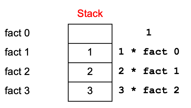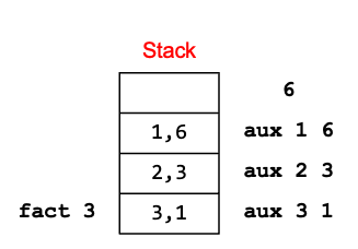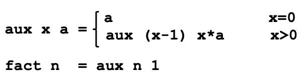 let rec fact n = if n = 0 then 1 else n * fact (n-1);; fact 5;; # val fact : int -> int = <fun> # - : int = 120